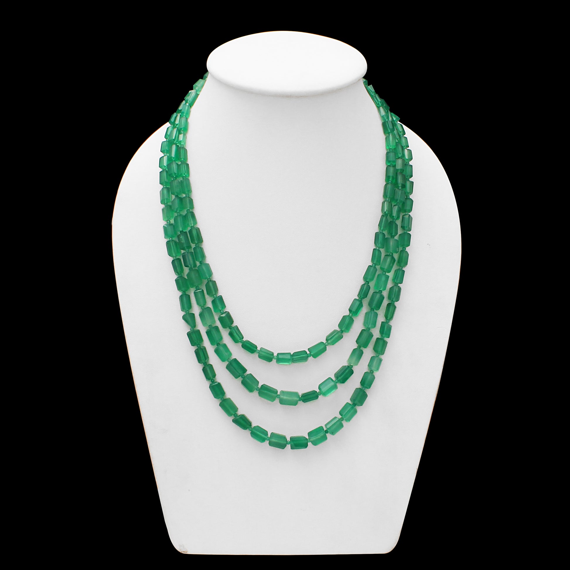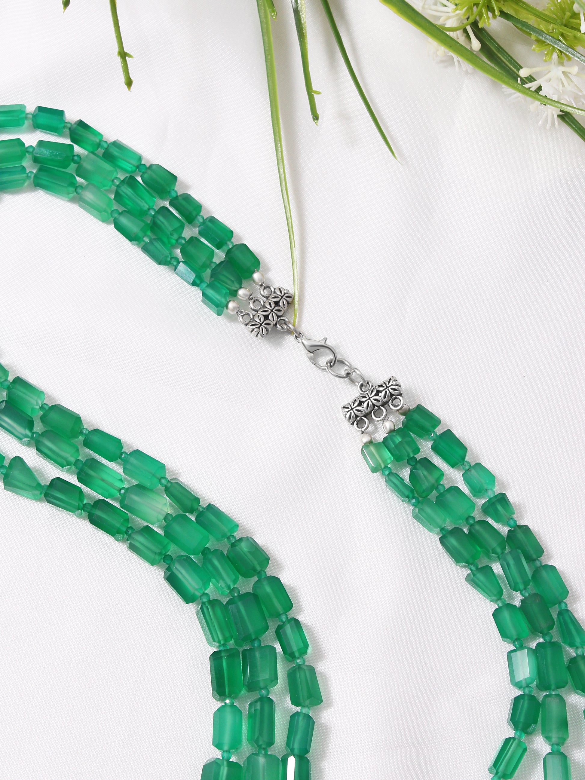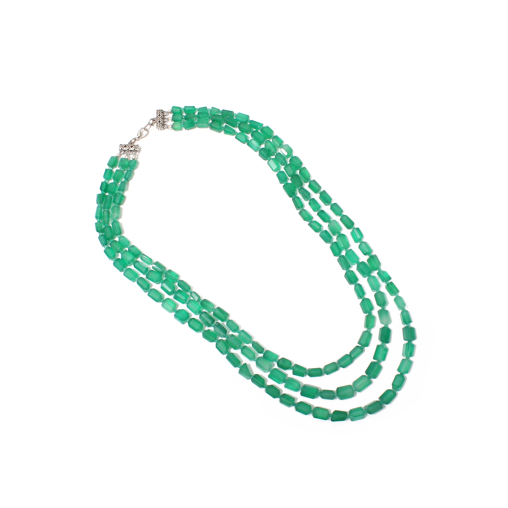"Verdant Elegance: Green Onyx Triple Layer Necklace"