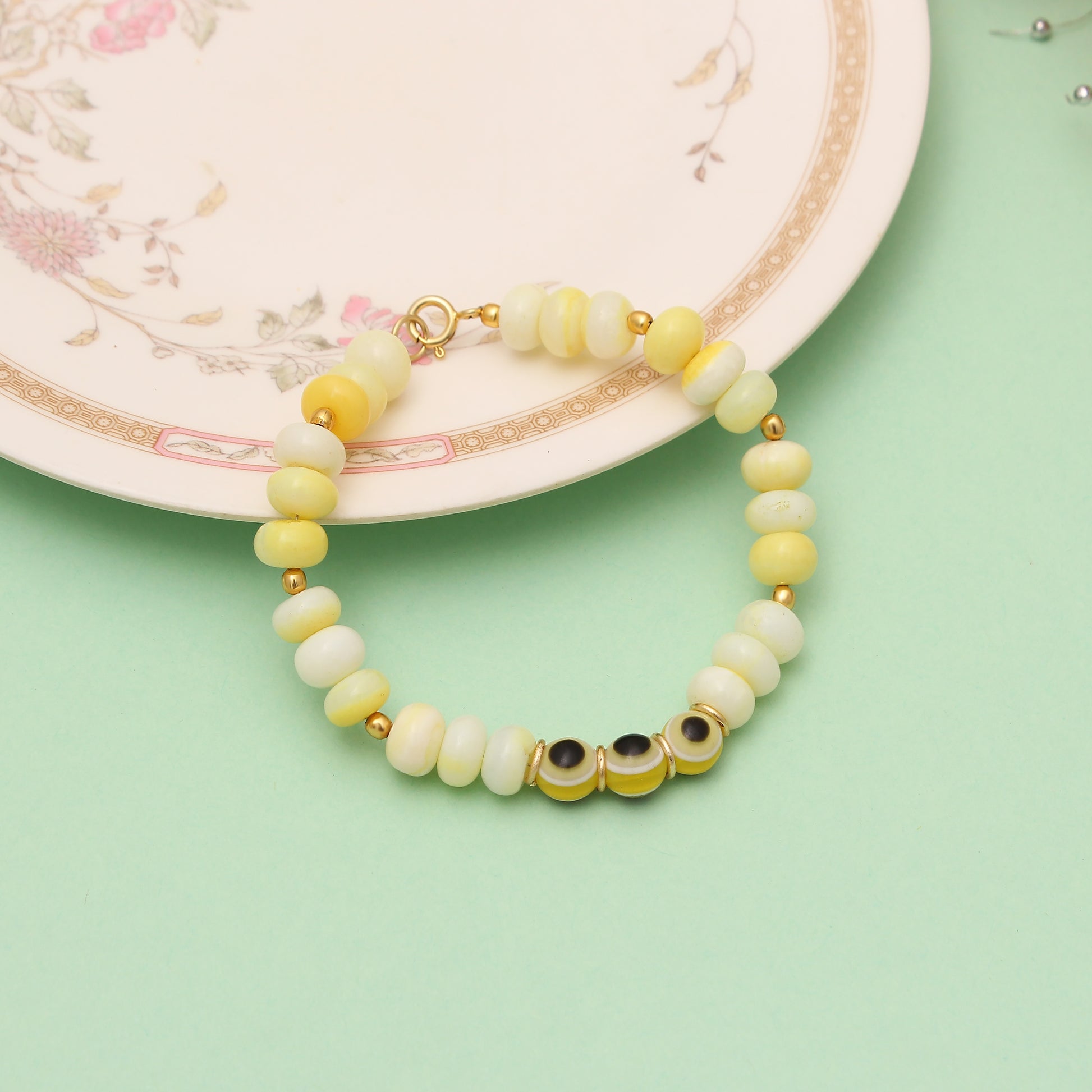 Yellow Candy Opal & Evil Eye Rakhi/Bracelet - Joy & Protection Benefits