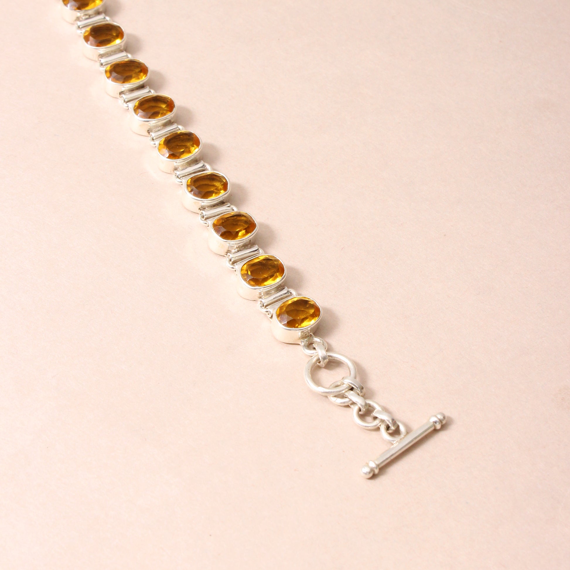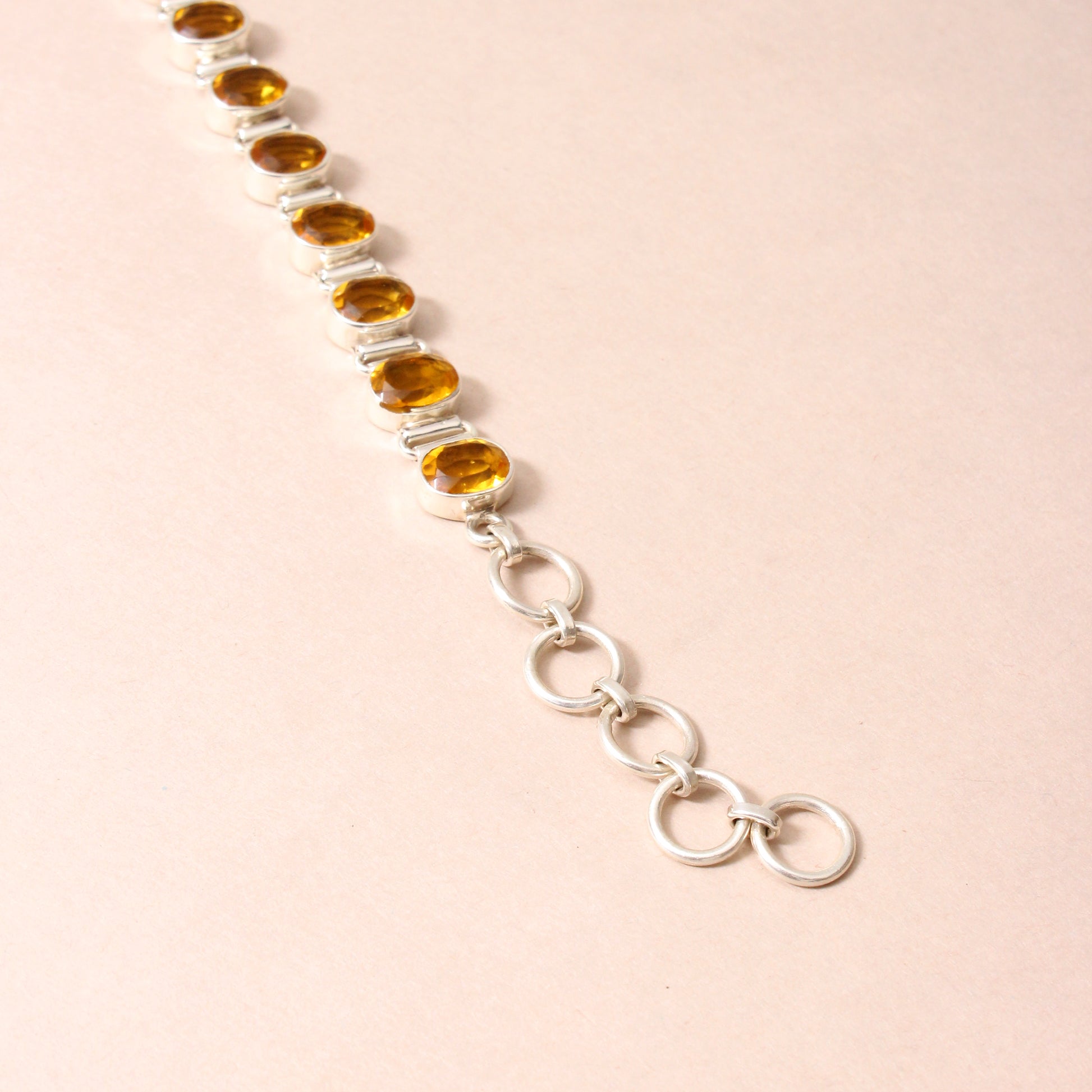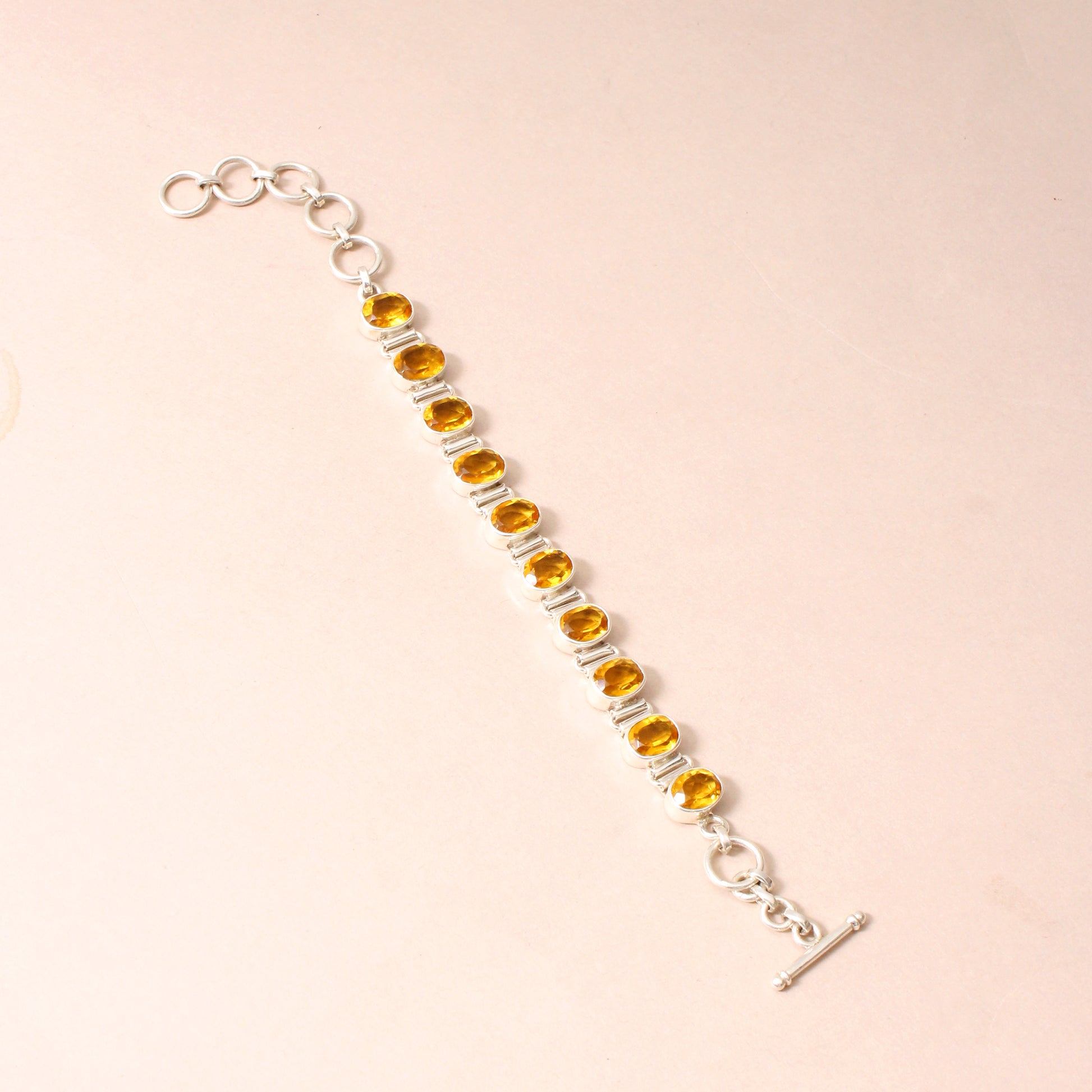 925 Sterling Silver Yellow Hydro Quartz Gemstone Bracelet