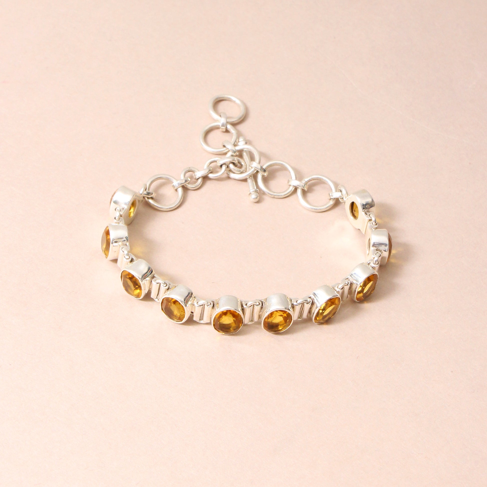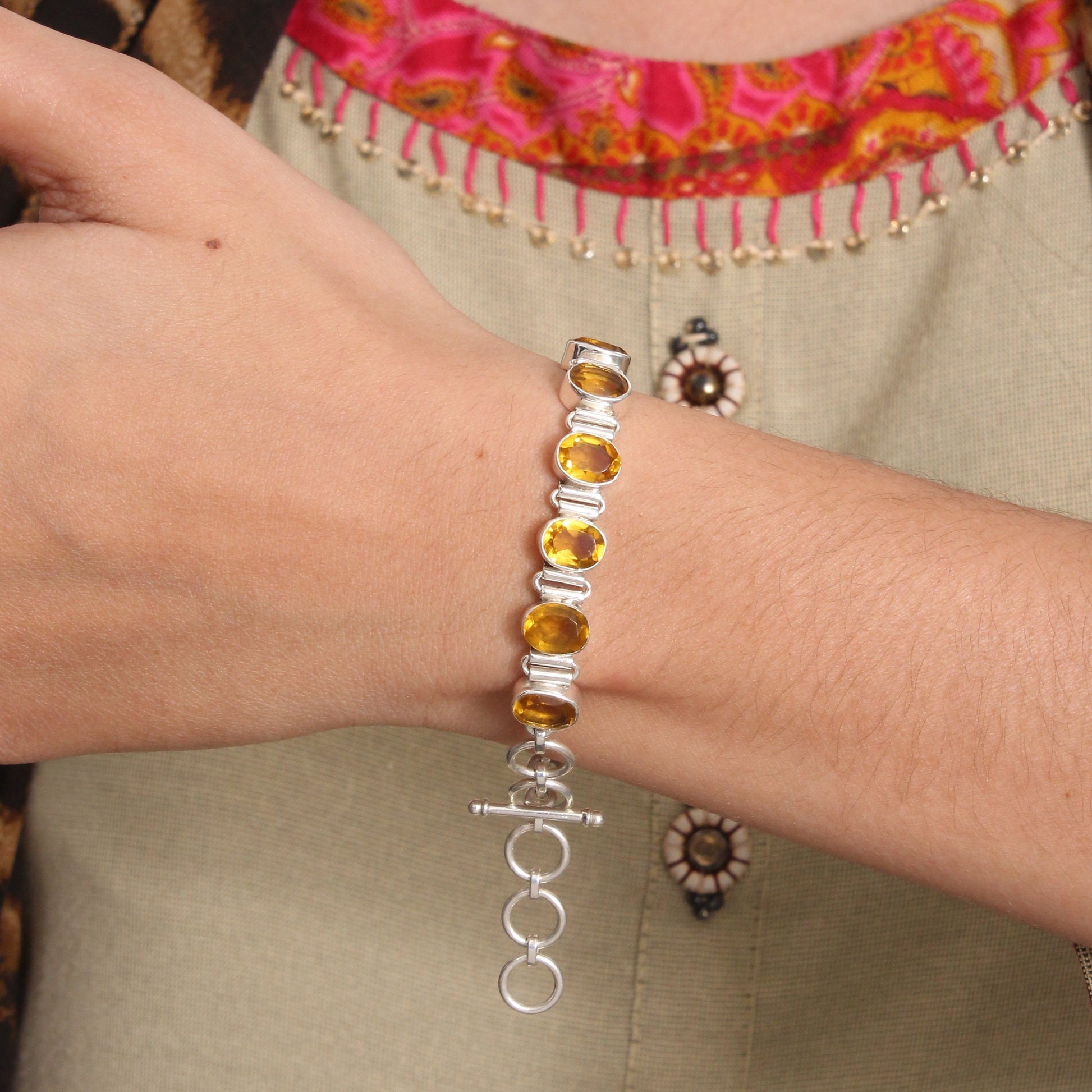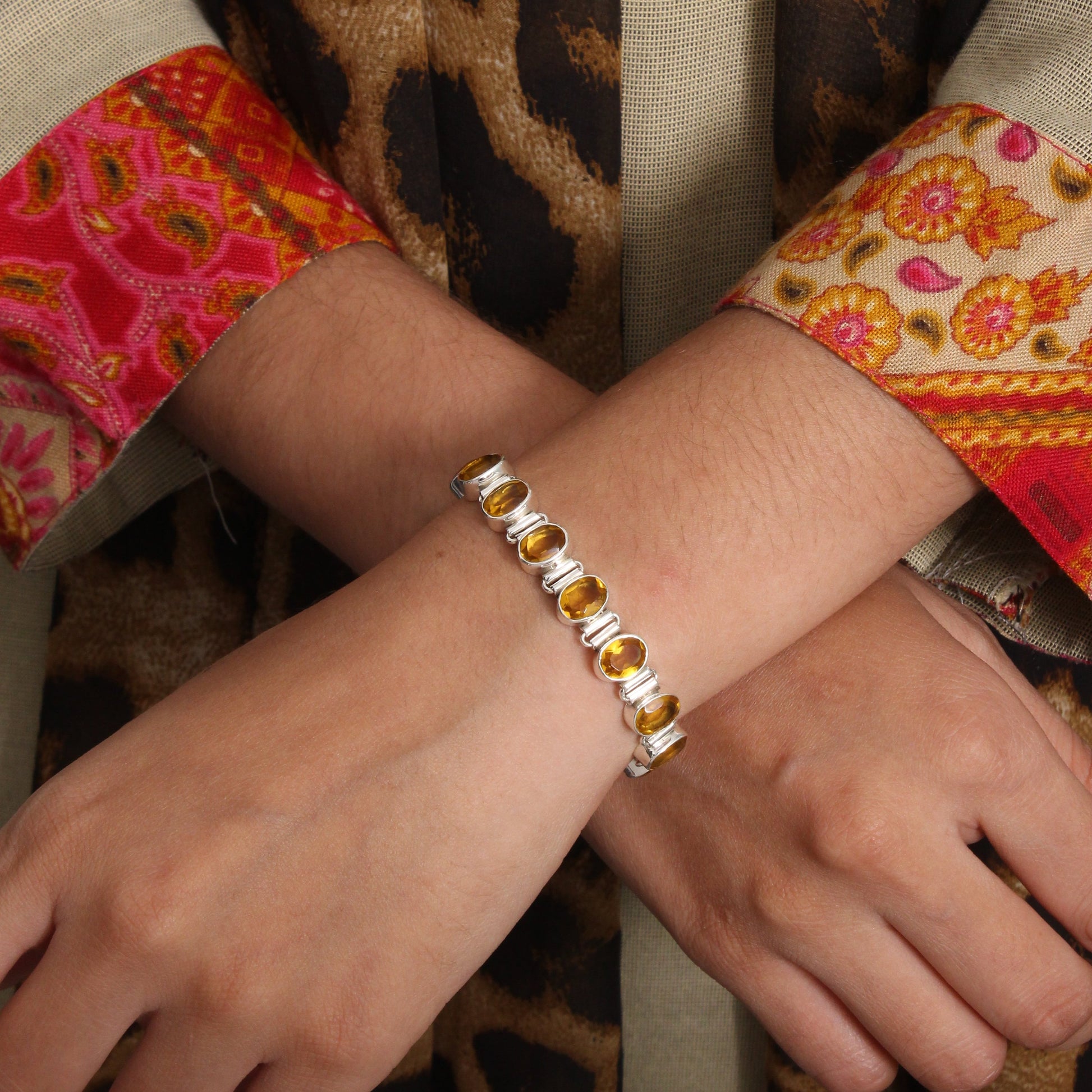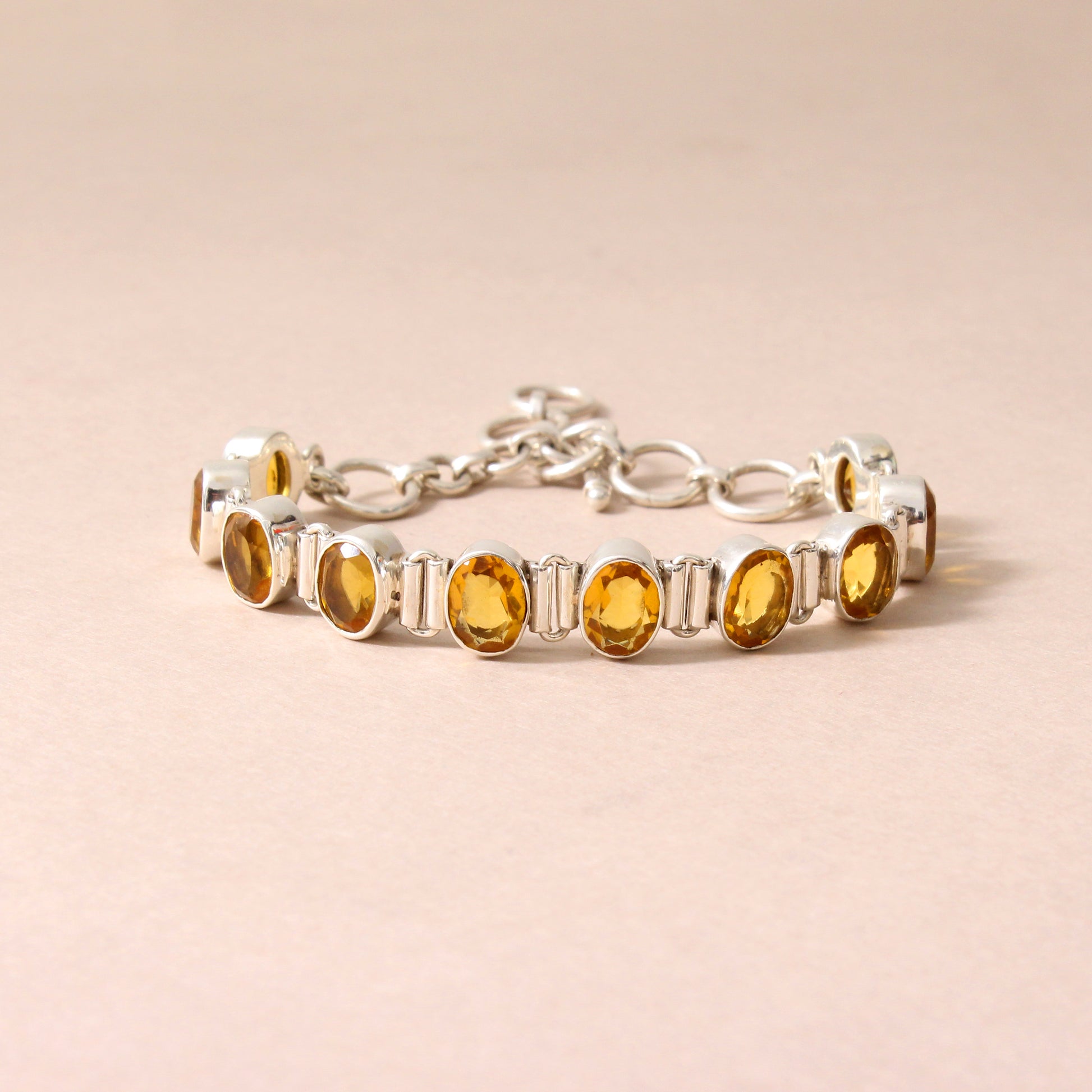 925 Sterling Silver Yellow Hydro Quartz Gemstone Bracelet