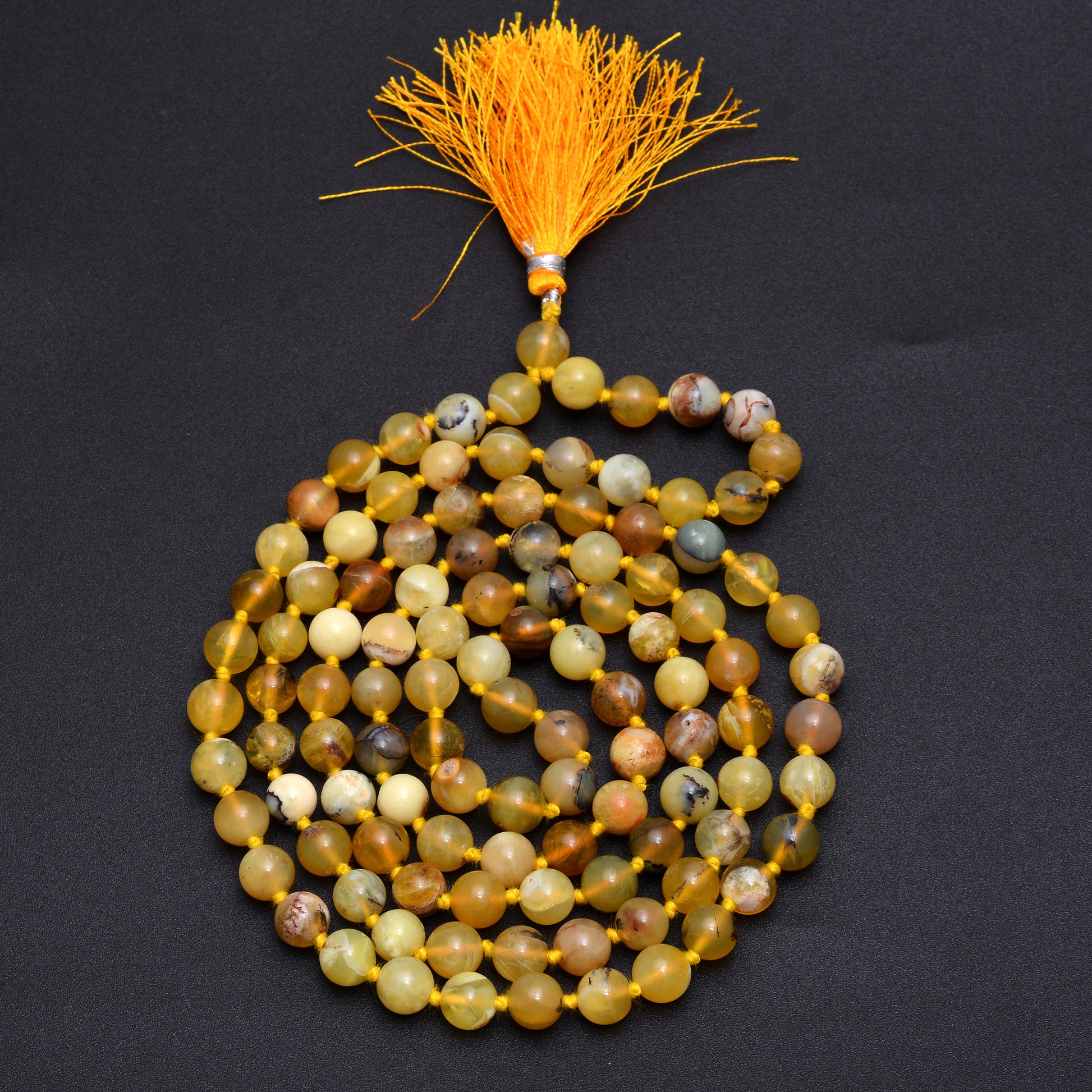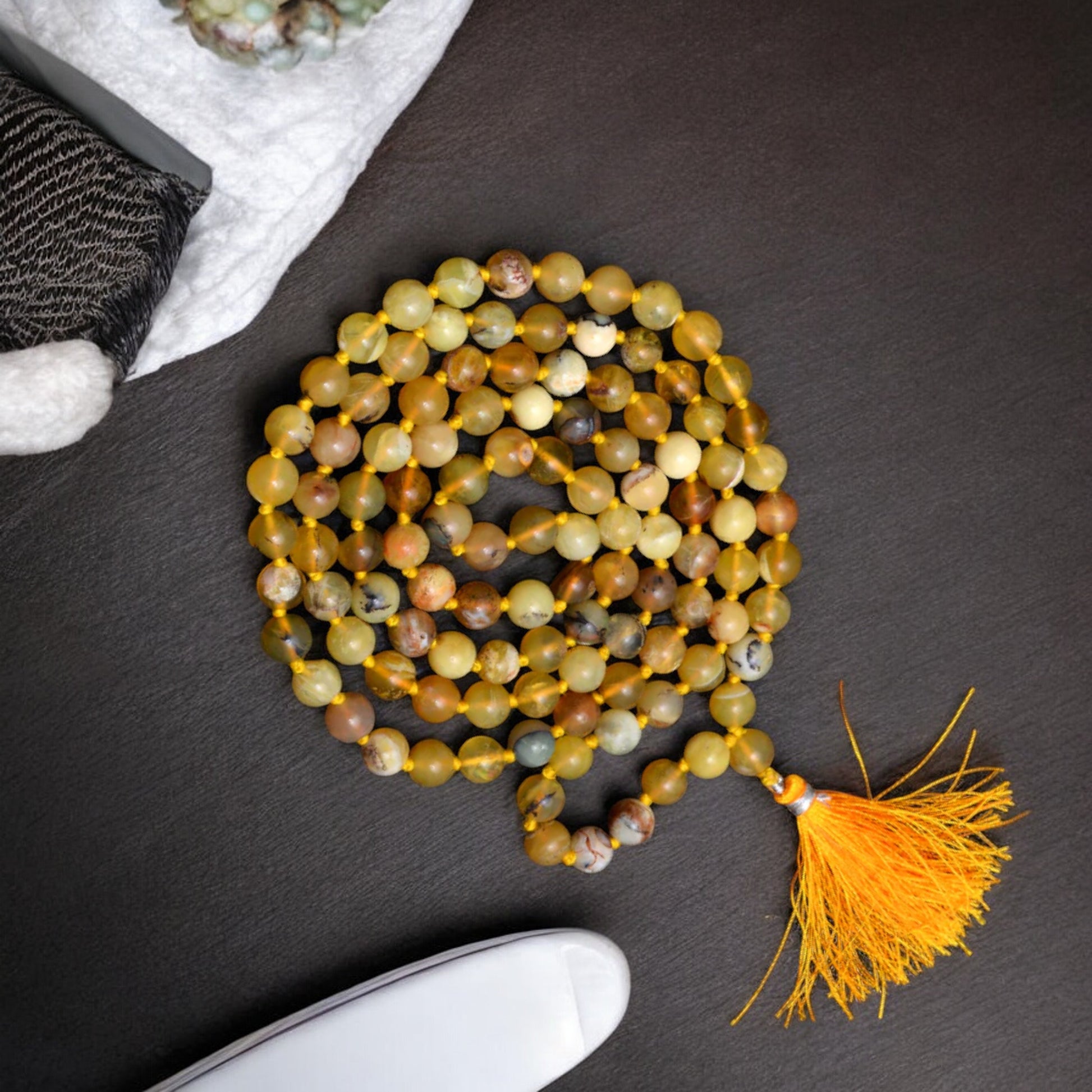 Discover the vibrant energy of Yellow Opal with our Japa Mala, crafted to ignite creativity, enhance personal power, and boost self-confidence. Ideal for meditation and spiritual growth, this mala radiates positivity and joy, helping you to manifest your dreams and achieve emotional balance. Elevate your spiritual practice with the transformative benefits of Yellow Opal.